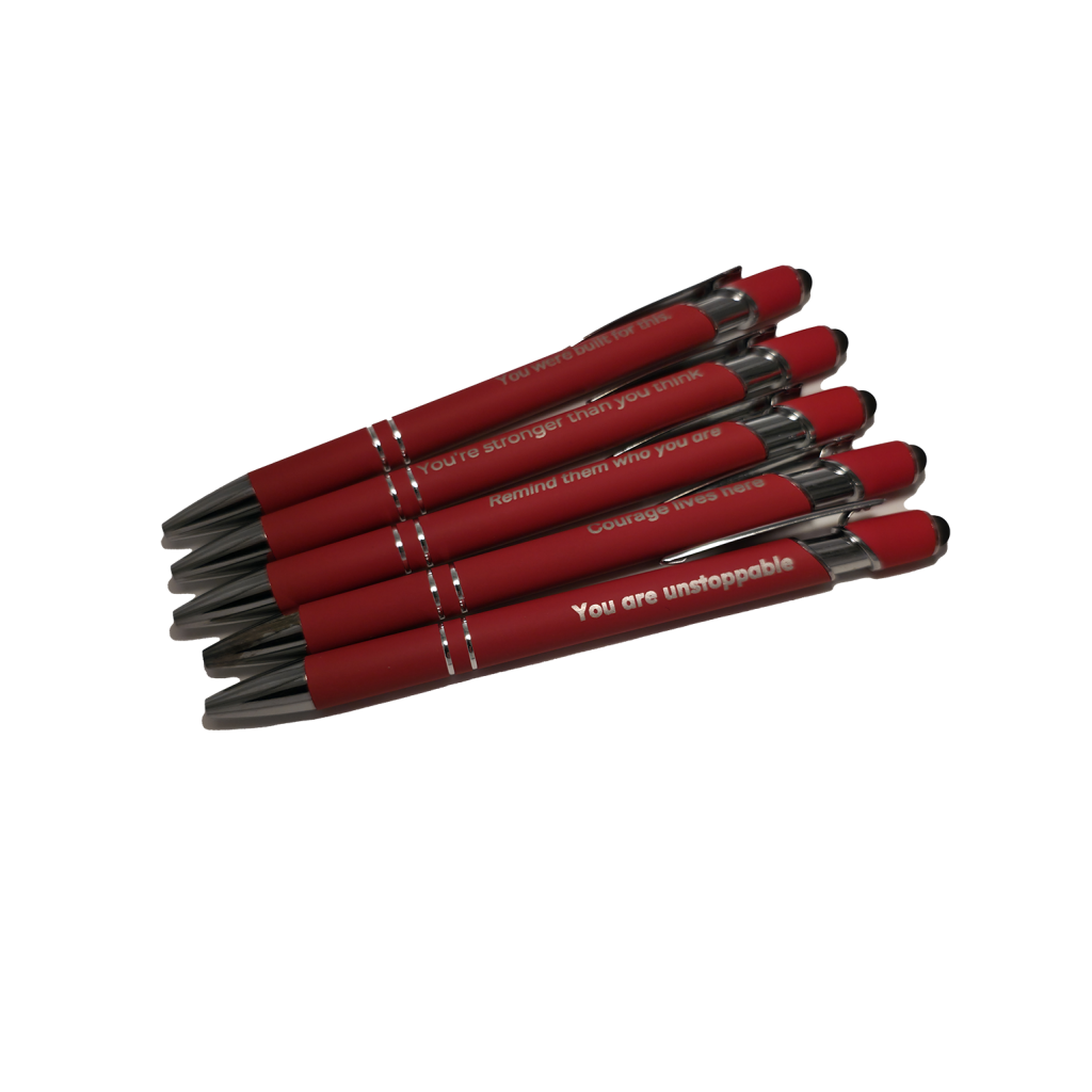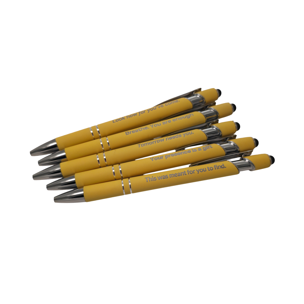 Each project pen is engraved with a message of hope or courage. It all starts when someone like you decides to put one into the world.